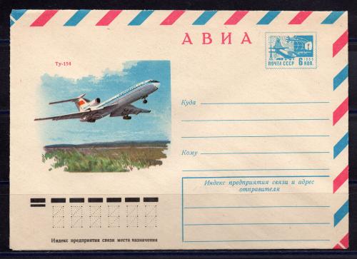 Почтовый конверт ХМК. СССР. 1977 г. Ту-154. КО.