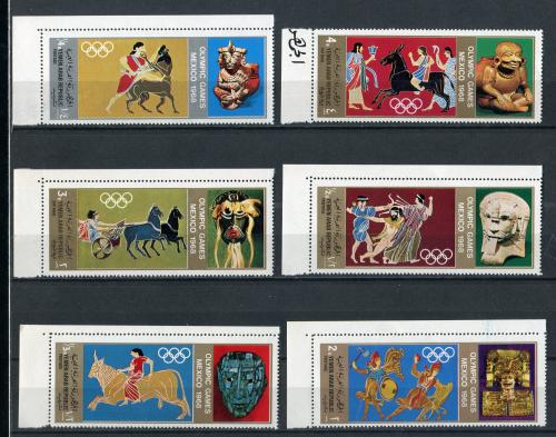 Почтовые марки. Йемен 1968 г. Олимпийские игры. Искусство. № 777-782. Зубц. См. сост.