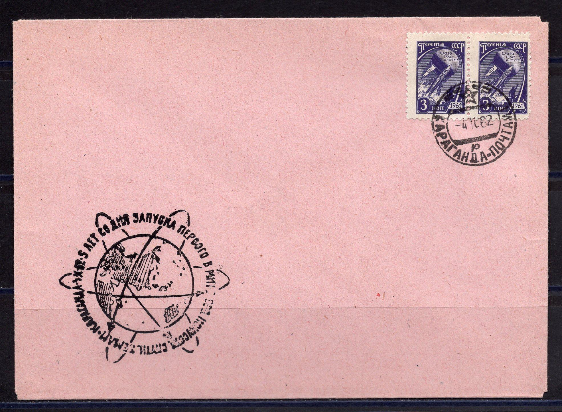 Конверт ХМК со СГ. СССР. 1962 г. 5 лет со дня запуска первого в мире спутника. КО.