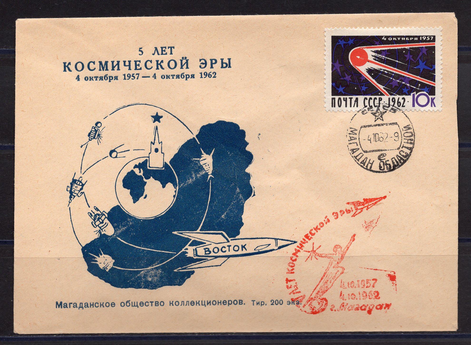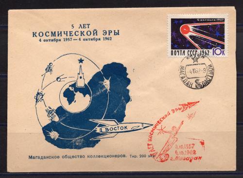 Почтовый конверт ХМК со СГ. СССР. 1962 г. 5 лет космической эры. КО.