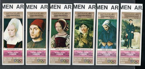 Почтовые марки. Йемен, 1969 г. №1018-1023. Живопись. Лондон. Нац. Галерея. Беззуб.