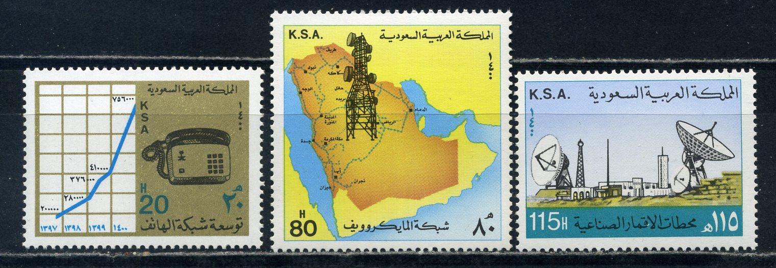 Почтовые марки. Саудовская Аравия. 1981г. Связь. Спутниковая станция. Карта страны. №688-690 (Mi: 7.00 Евро)