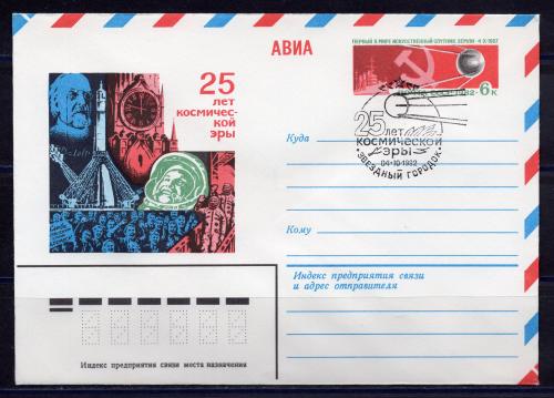Почтовый конверт ХМК с ОМ. Со СГ. СССР. 1982 г. 25 лет космической эры. КО.