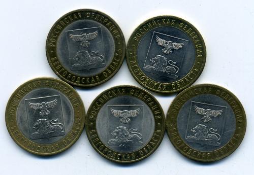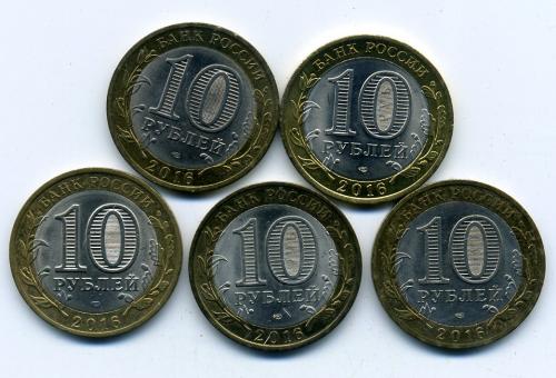 Монеты России. 10 рублей 2016 г. Белгородская область. 5 шт.