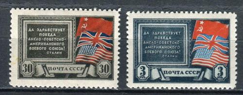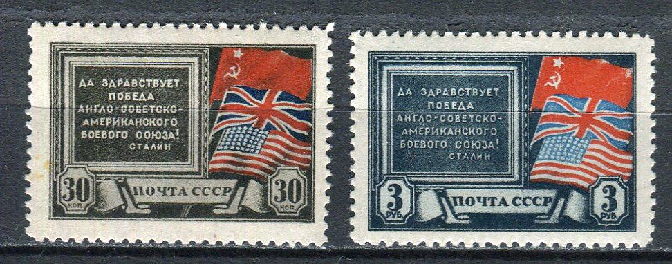 Почтовые марки. СССР, 1943 г. №878-879. Тегеранская конференция.