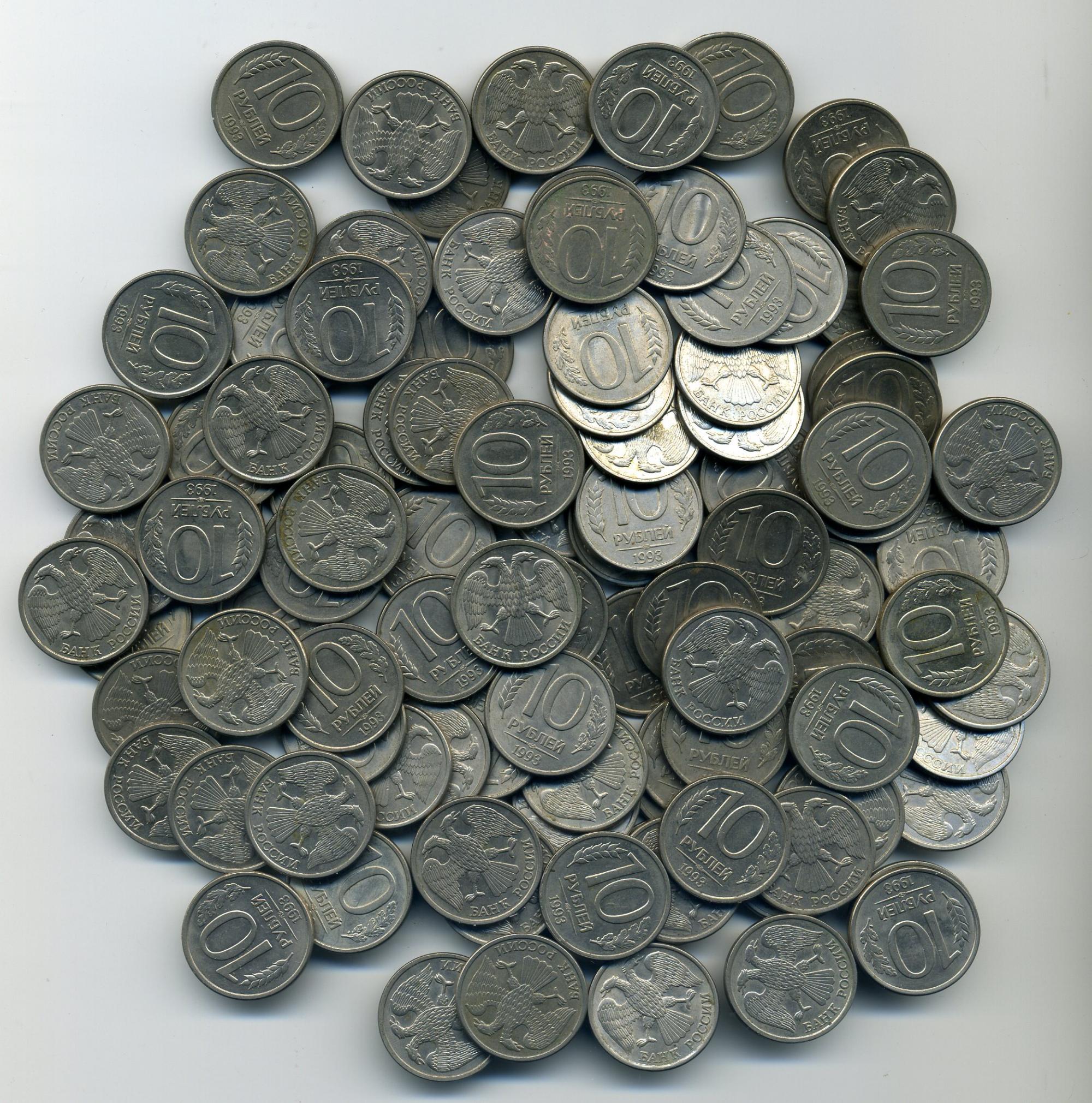 Монеты России. 10 рублей 1993 г. ЛМД. Магнитная. 100 шт.