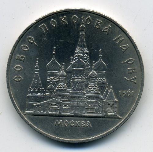 Монеты СССР. 5 рублей 1989 г. Собор Покрова на рву.