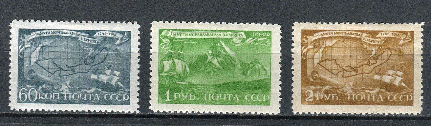 Почтовые марки. СССР, 1943 г. №855-857. Плаванье Беринга.