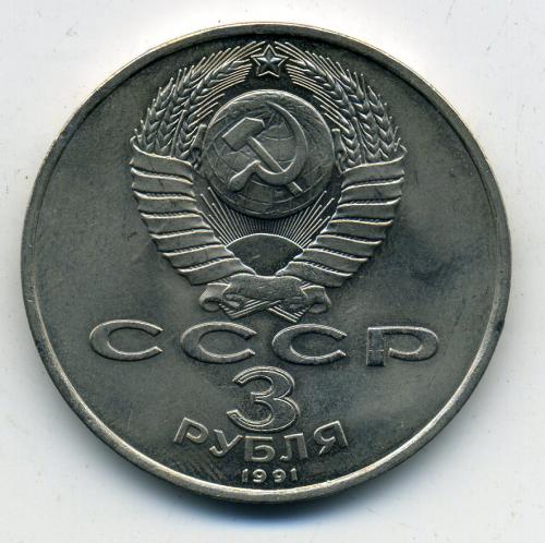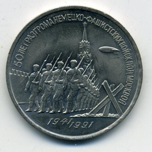 Монеты СССР. 3 рубля 1991 г. 50 лет разгрома немецко-фашистских войск под Москвой.
