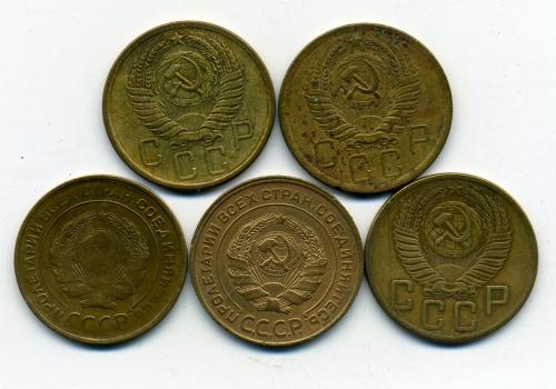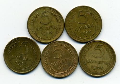 Монеты СССР. 5 копеек 1930-1956 г. 5 шт.