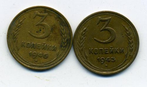 Монеты СССР. 3 копейки 1943,1946 г. 2 шт.