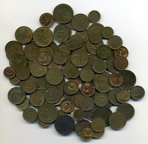 Монеты СССР. 1,2,3,5 копеек 1961-1991 г 100 шт