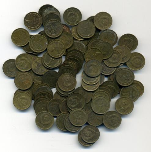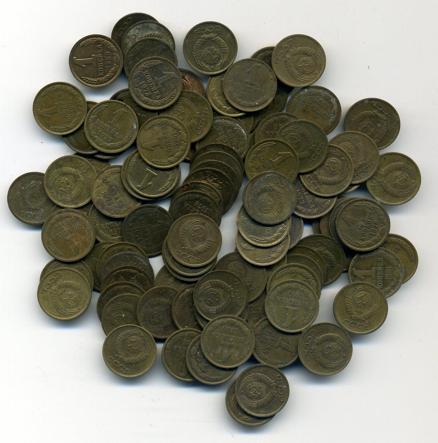 Монеты СССР. 1 копейка 1961-1991 г 100 шт.