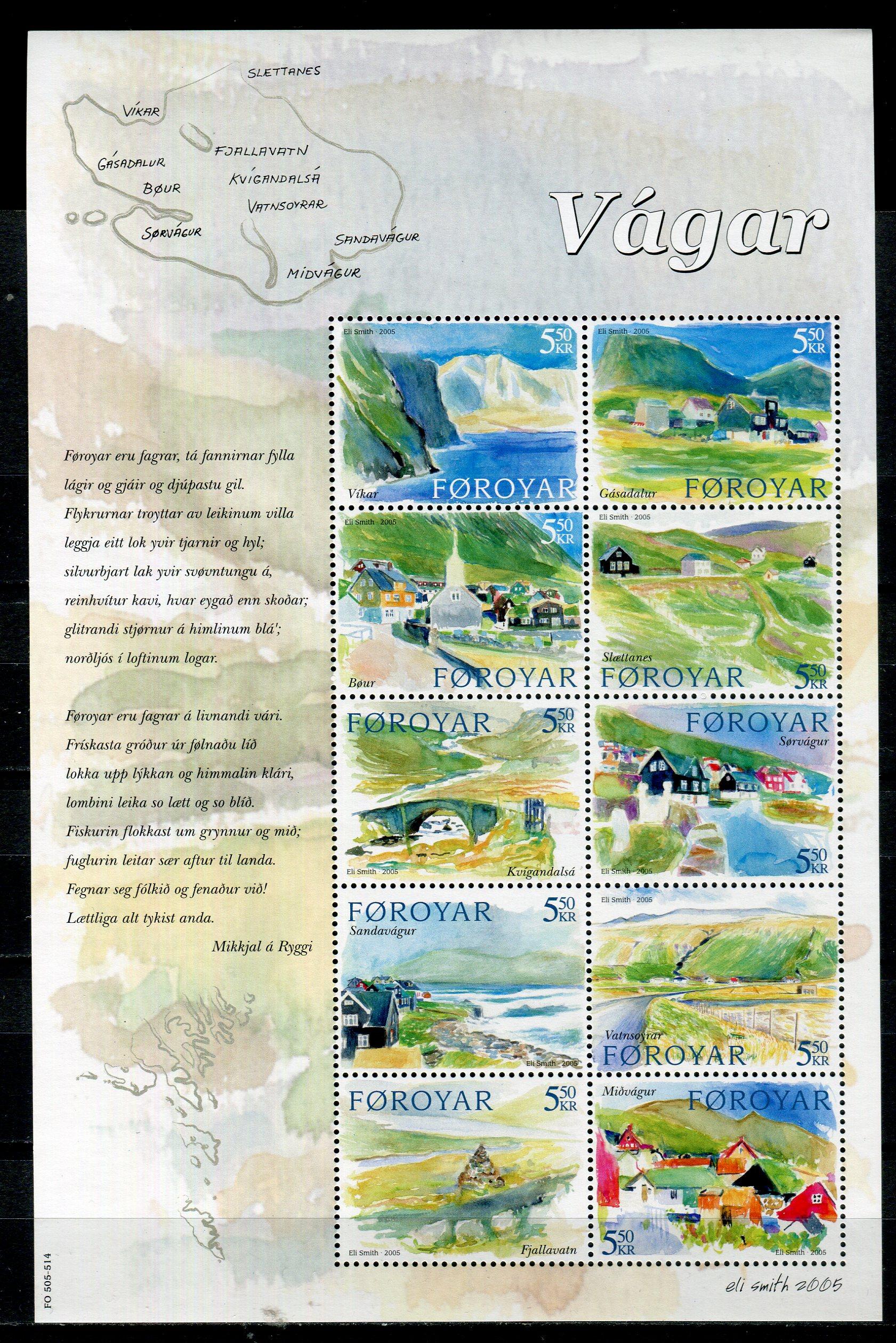 Почтовые марки. Фарерские о-ва, 2005 г. MiNr. 513 - 522 МЛ. Деревни на острове Вагар.