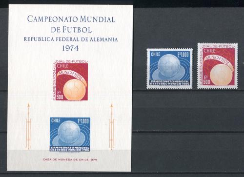 Почтовые марки. Чили, 1974 г. №804-805 + ЛБЛ. Футбол.