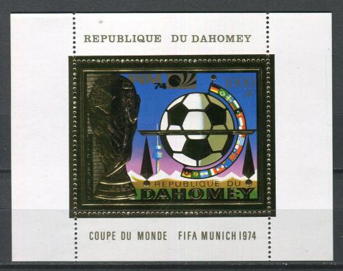 Почтовые марки. Дагомея, 1974 г. Футбол. Бл.37 A. Фольга. Золото