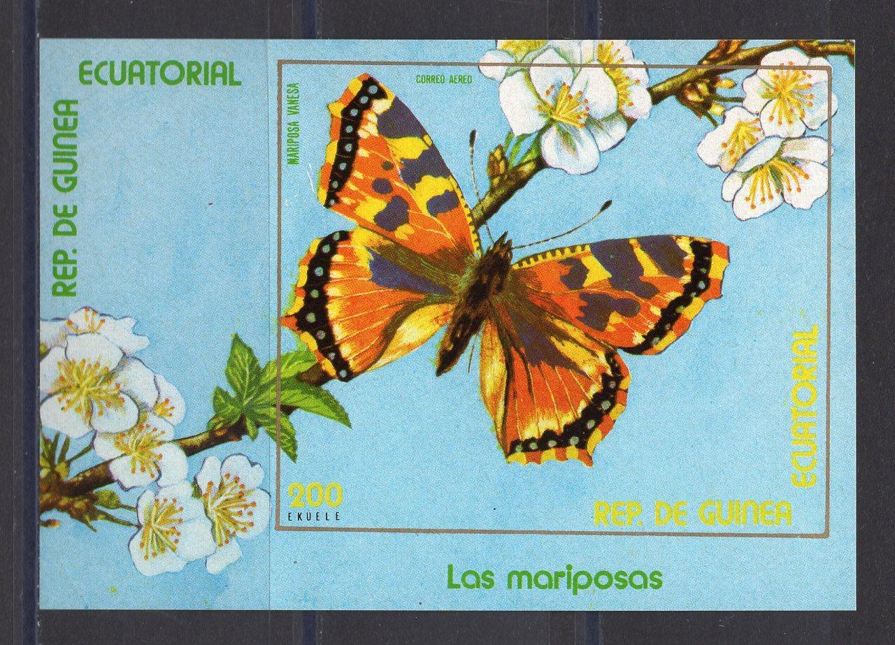 Почтовые марки. Экваториальная Гвинея. 1976 г. Бабочки. Блок № 255. Беззубц.