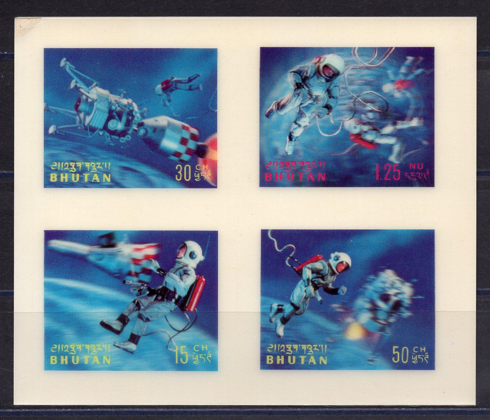 Почтовые марки. Бутан. 1967г. Космос. Стерео. 3D. Пластик. Блок №11.