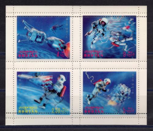 Почтовые марки. Бутан. 1967г. Космос. Объёмные. Блок №12А. №175А-178А. RRR ! Ограниченный выпуск с перфорацией . Mi 200 Евро