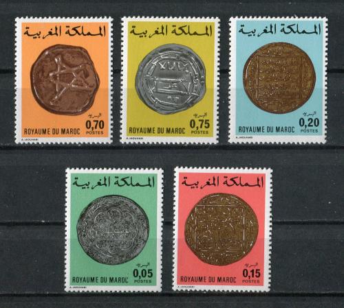 Почтовые марки. Марокко, 1976 г. MiNr. 844 - 849. (кроме 846) Древние монеты.