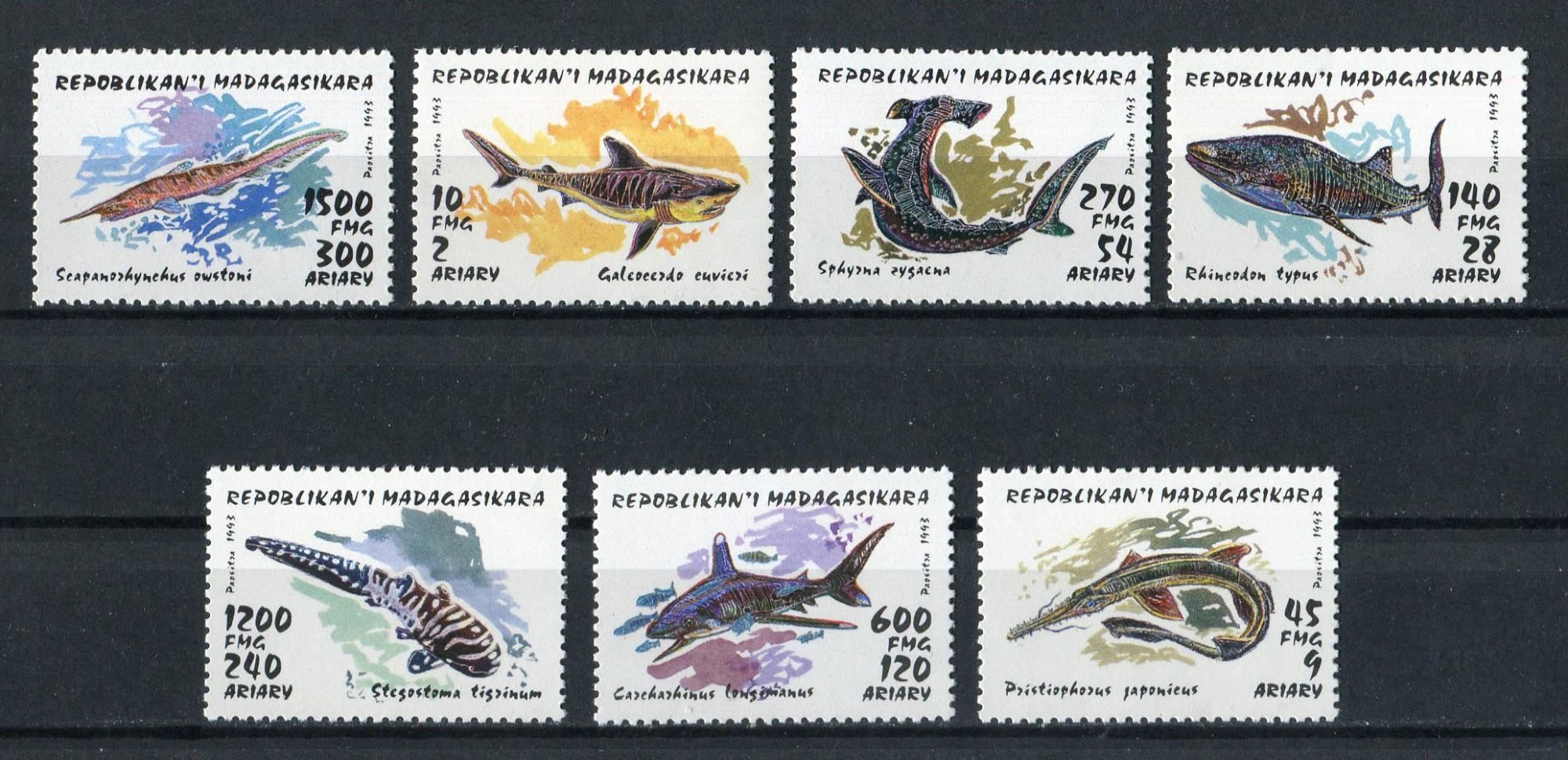 Почтовые марки. Мадагаскар, 1993 г. №1527-1533. Акулы.