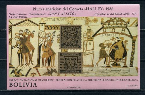 Почтовые марки. Боливия. 1986г. Древняя живопись. Космос. Комета Галлея. Блок №152В. Беззуб.(Mi: 85.00 Евро)