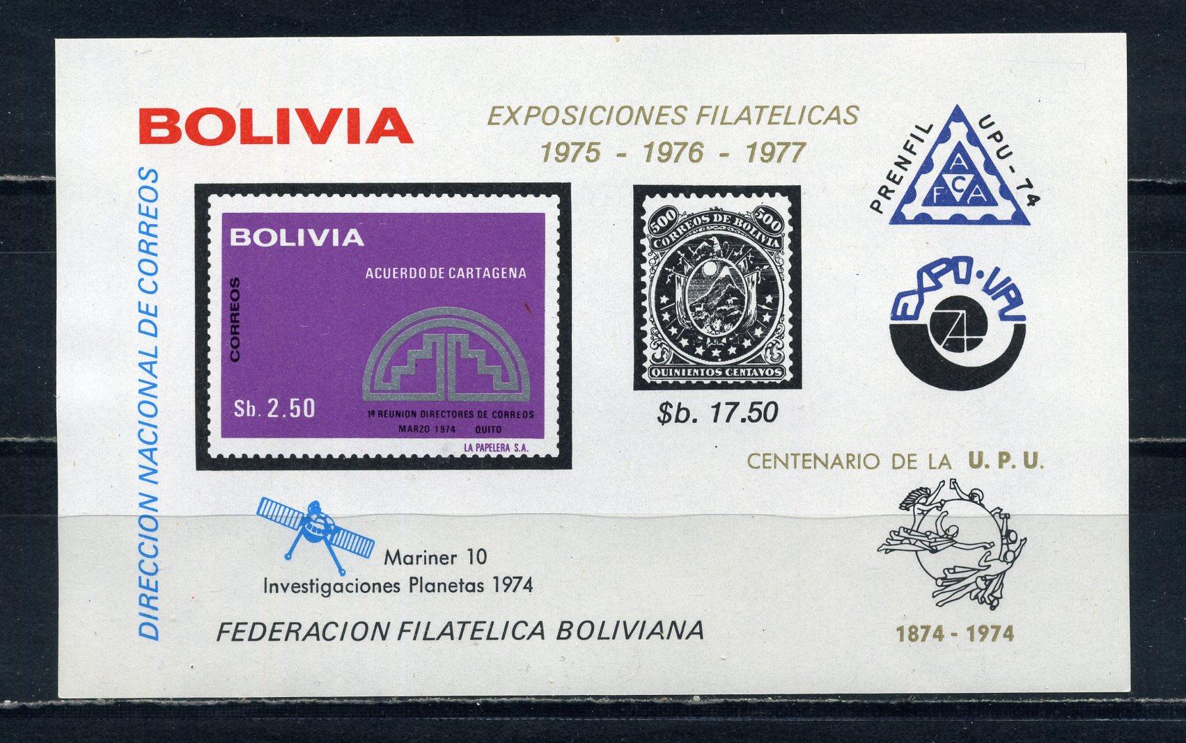 Почтовые марки. Боливия. 1975г. Космос. Маринер-10. ВПС. Блок №53в. Беззубц. (Mi: 45.00 Евро)
