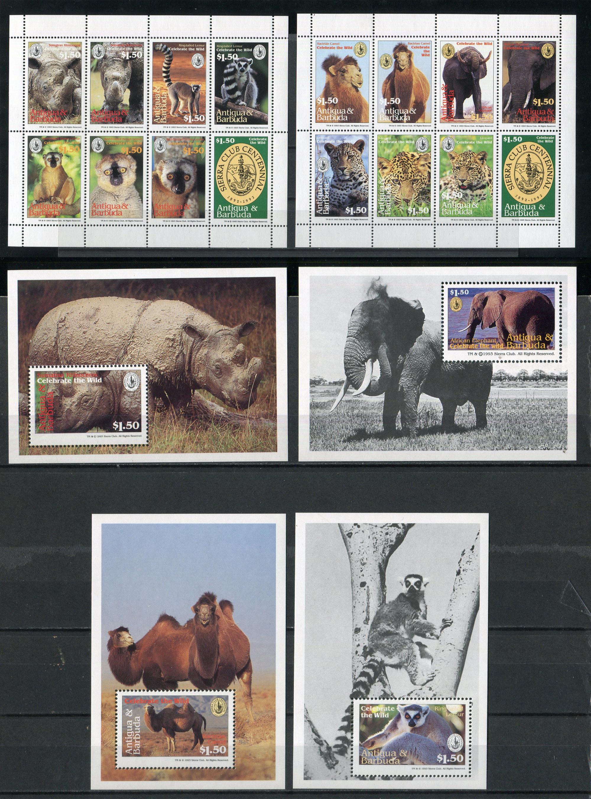 Почтовые марки. Антигуа и Барбуда, 1994 г. №1934-1948, Бл.284-287. Дикие животные. Комплект. (Mi 38 €)
