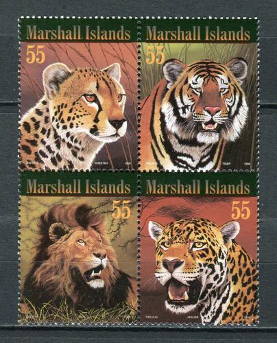 Почтовые марки. Маршаллы, 1996 г. №667-670. Большие кошки.