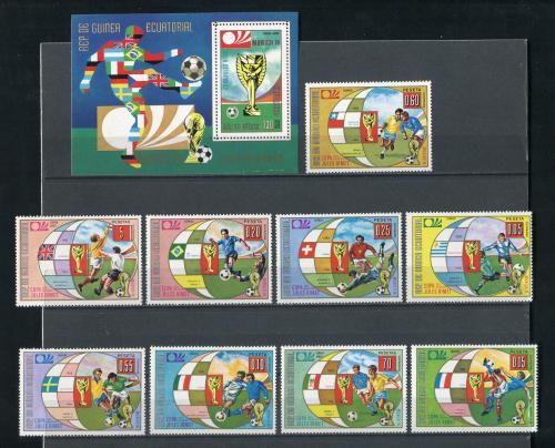 Почтовые марки. Экваториальная Гвинея, 1973 г. №275-283, Бл. 76. Футбол. Чемпионат мира в Германии.