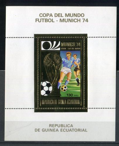 Почтовые марки. Экват. Гвинея, 1973 г. Бл. 80. Футбол. Фольга. Золото.
