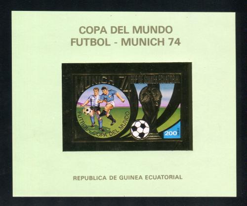 Почтовые марки. Экватор. Гвинея, 1973 г. Бл. А 81. Футбол. Фольга. Золото. Беззуб. Mi 11,00 €