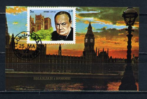 Почтовые марки. Шарджа. 1972г. Уинстон Черчилль. Блок №97.