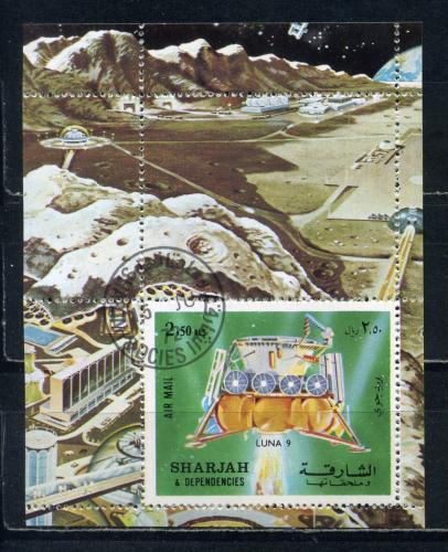 Почтовые марки. Шарджа. 1972г. Космос. Луна-9. Блок №114.