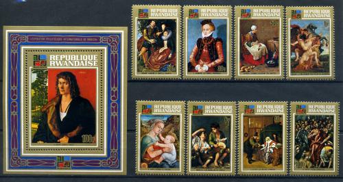 Почтовые марки. Руанда. 1973 г. № 566-573, Бл. 32. Живопись. Классика.