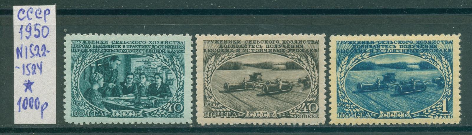 Почтовые марки. СССР 1950 г. Сельское хозяйство № 1522-1524