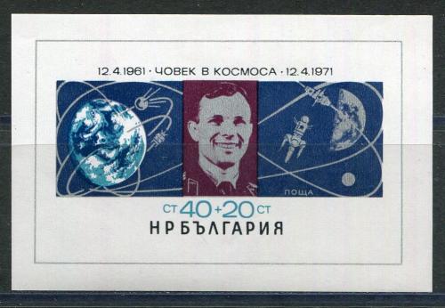 Почтовые марки. Болгария. 1971г. Гагарин. Блок №32.