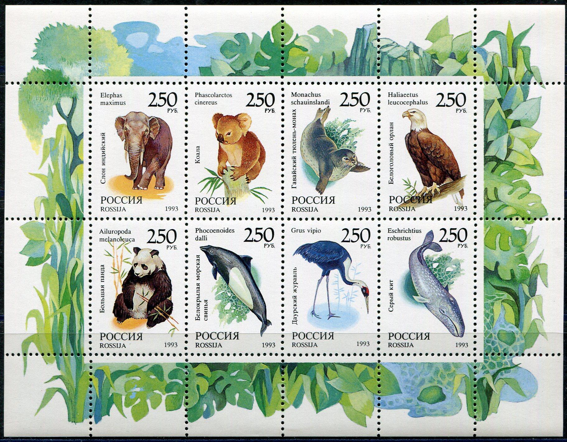 Почтовые марки. Россия. 1993г. Фауна мира. МЛ. №130-137.