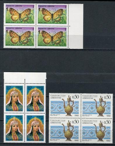 Почтовые марки. Узбекситан, 1992 г. №1-2, 6. Бабочки. Принцесса. Кувшин. КБ.