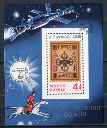 Почтовые марки. Монголия, 1984 г. Первая марка. Космос. Бл. 101.