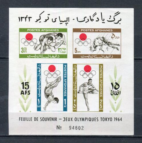 Почтовые марки. Афганистан, 1964 г. Бл. 58. Олимпийские игры в Токио.