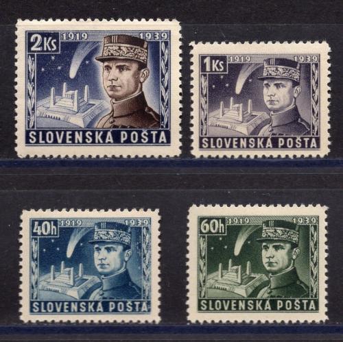 Почтовые марки. Словакия. 1939г. Астрономия. Комета. №1-4.