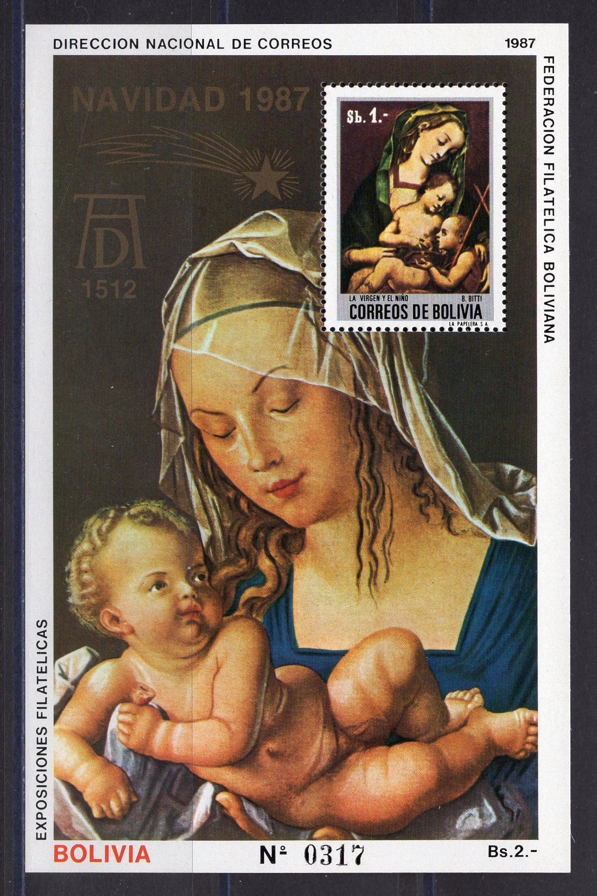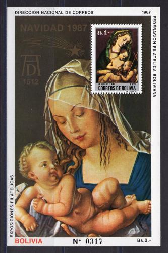 Почтовые марки. Боливия. 1987г. Рождество. Дюрер. Блок №170 (Mi: 32.00 Евро)
