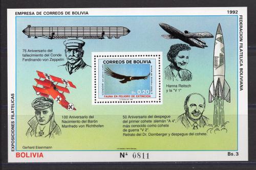 Почтовые марки. Боливия. 1992г. Авиация. Птицы. Блок №199 (Mi: 17.00 Евро)