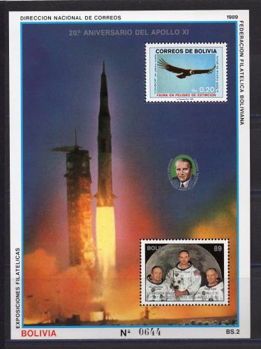 Почтовые марки. Боливия. 1989г. Космос. Аполло-11. Блок №183 (Mi: 25.00 Евро)