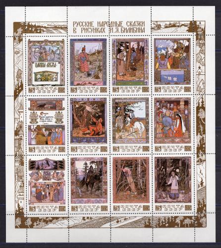 Почтовые марки. СССР. 1984г. Сказки в рисунках И.Я.Билибина. №5530-5541. Серия в листе.