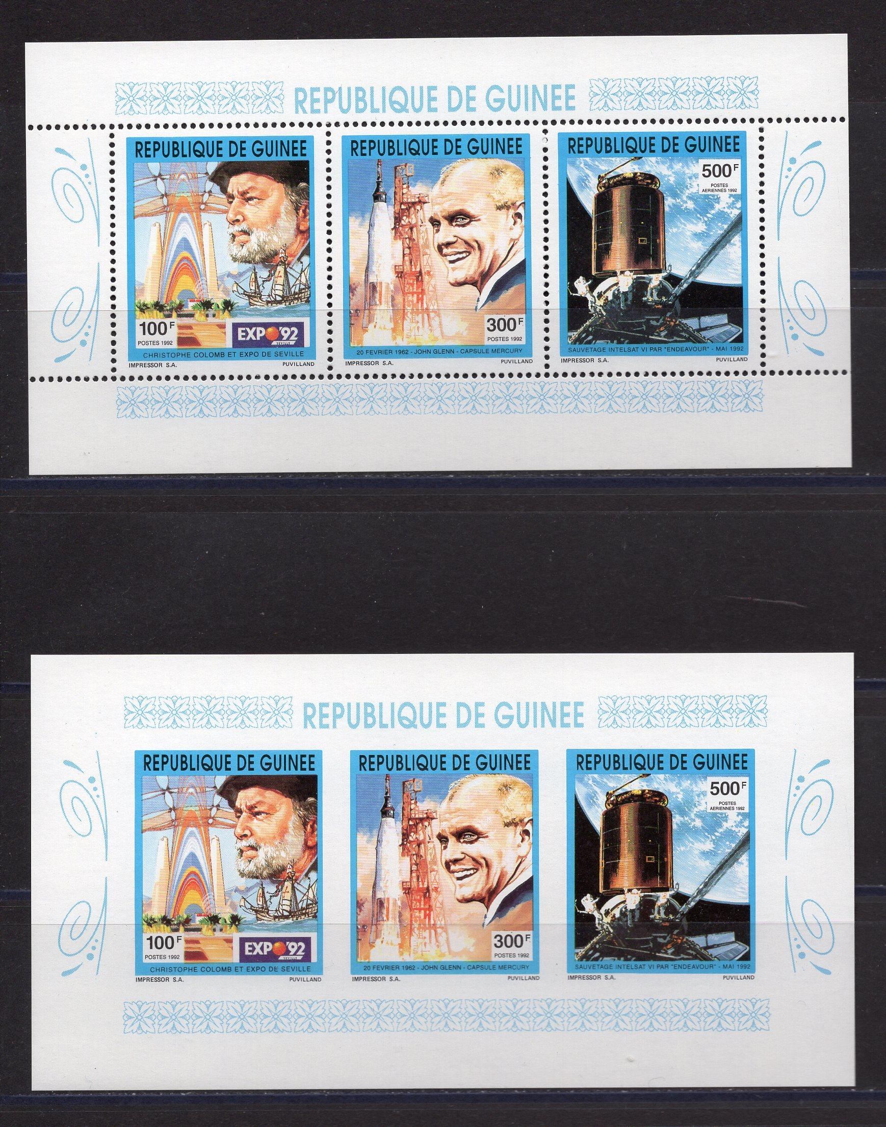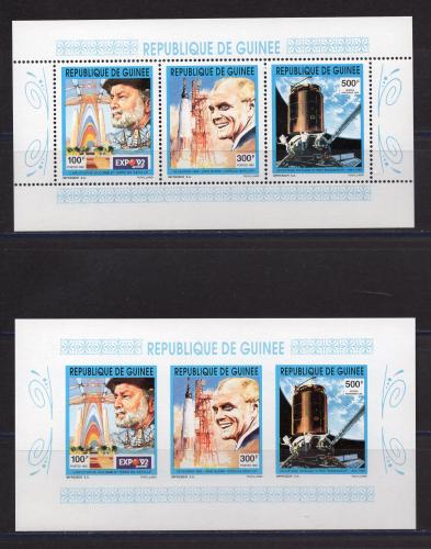 Почтовые марки. Гвинея. 1992г. Космос. Колумб. Джон Гленн. №1393. А+В.