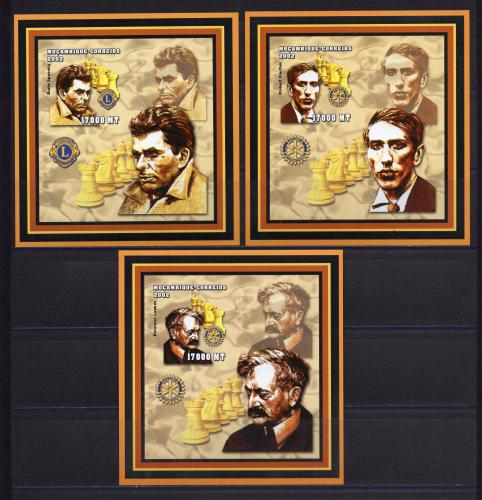 Почтовые марки. Мозамбик. 2002г. Шахматы. Ласкер. Люкс-блок. №2454. Беззубц. №2454 etc. + Фишер.