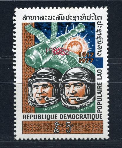 Почтовые марки. Лаос. 1982г. Космос. Двойная надпечатка. №602 (Mi: 25.00 Евро - обычная)