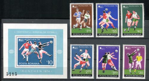 Почтовые марки. Румыния, 1974 г. №3203-3208, Бл.114. Футбол.